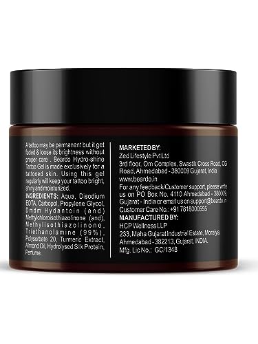 Beardo Tattoo Shiner Gel, 50g | Hydro Gel Heals & Maintains Tattoo Ink | Tattoo Gel for Men with Almond Oil & Turmeric Extract | Brightens & Shines Tatoo for Men