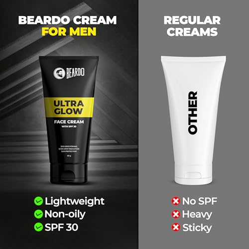 Beardo Ultraglow All in One Face Cream For Men with SPF 30, 60g | Aloe Vera With Vitamin E and Niacinamide for Skin Brightening & Dark Spots Reduction