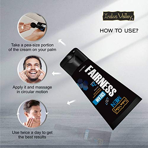 Indus Valley Men fairness cream is formulated using the best skin whitening natural ingredients which is a multi-purpose whitening cream for men. It is infused with the goodness of natural ingredients which makes it perfect for daily man's skincare routine. Mostly we are now exposed to harsh elements present in the environment which results in dark spots and dull skin. Keeping all the challenges men are facing on daily basis we have come up with this men's fairness cream which suits all skin types. Owing to its 2X Strong Effects it lightens skin tone reduces pigmentation spots and visible signs of aging. Also this fairness cream is specially formulated for men's tough skin and is non-greasy. It is very effective in reducing skin-related problems like pimples dull skin hyper-pigmentation dark spots uneven skin tone etc. Our fairness cream for men also protects from the UV rays and minimizes melanin formation. Moreover it also retains moisture balance in the skin which helps it to attain a healthy glow and brightness. Hence if you are dreaming to have a bright look that's sun-protected order your pack today! HOW TO USE?Take a pea size amount of cream Dab small spots of the cream across your faceGently massage using circular motion