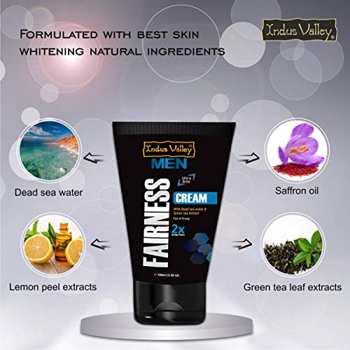 • Indus Valley Men's fairness cream contains the goodness of natural ingredients like Dead Sea water Lemon peel extracts saffron oil & green tea leaf extracts etc.