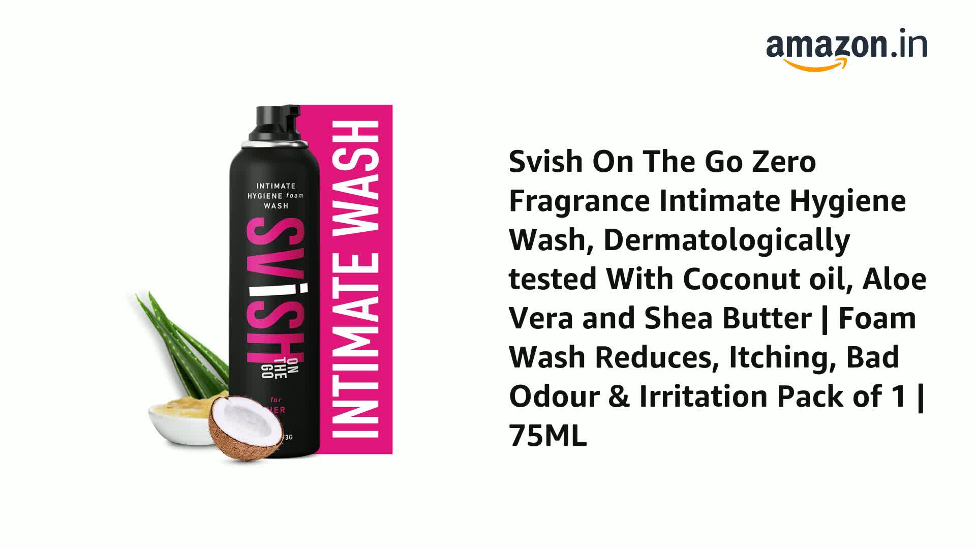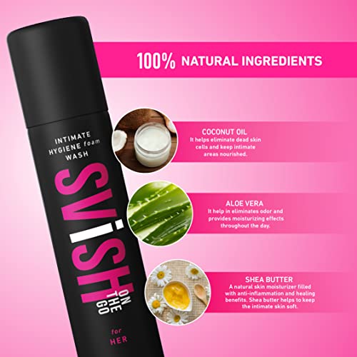 Svish On The Go Intimate Hygiene Wash for Women, Dermatologically tested With Coconut oil, Aloe Vera and Shea Butter | Foam Wash Reduces, Itching, Bad Odour & Irritation Pack of 1 | 75ML