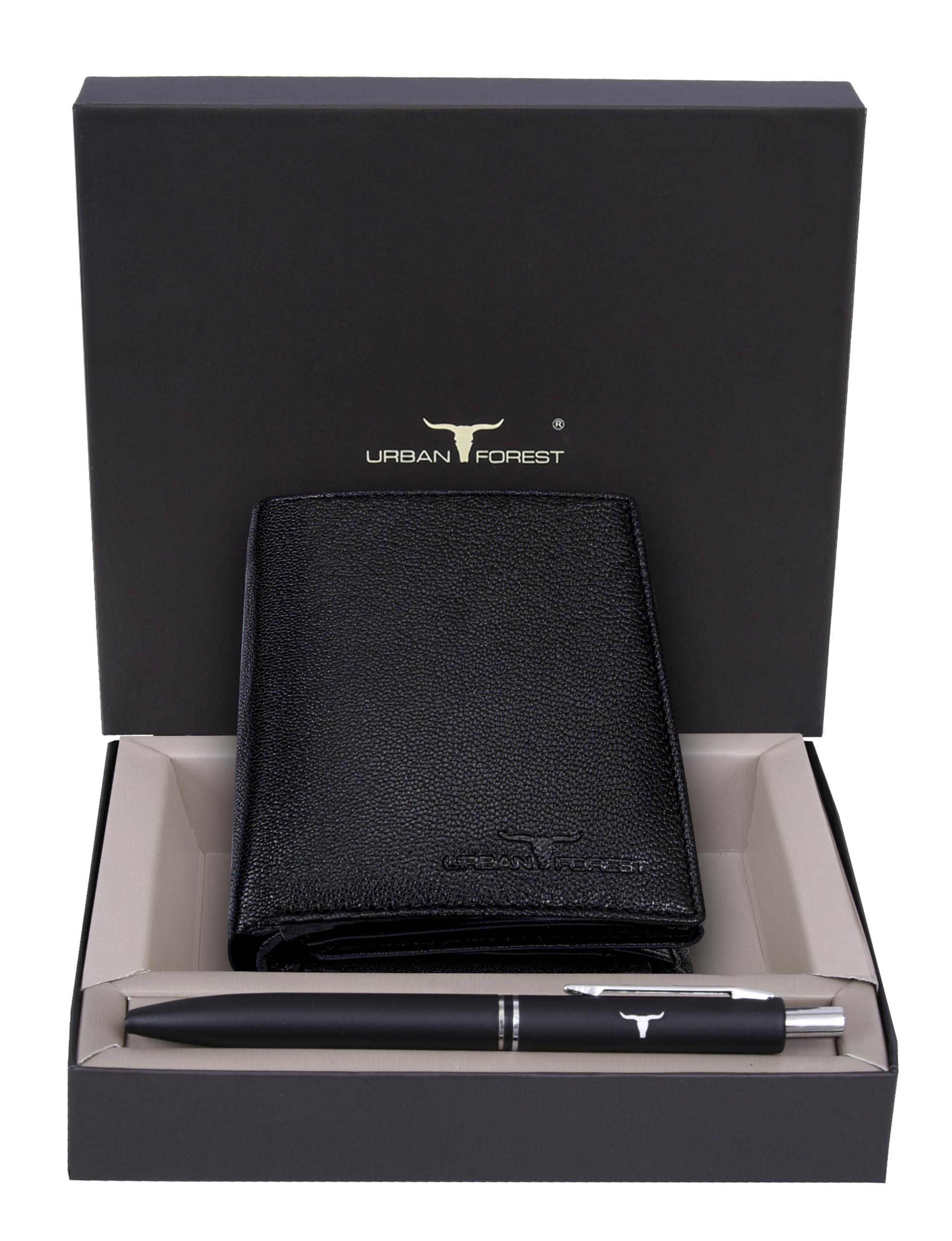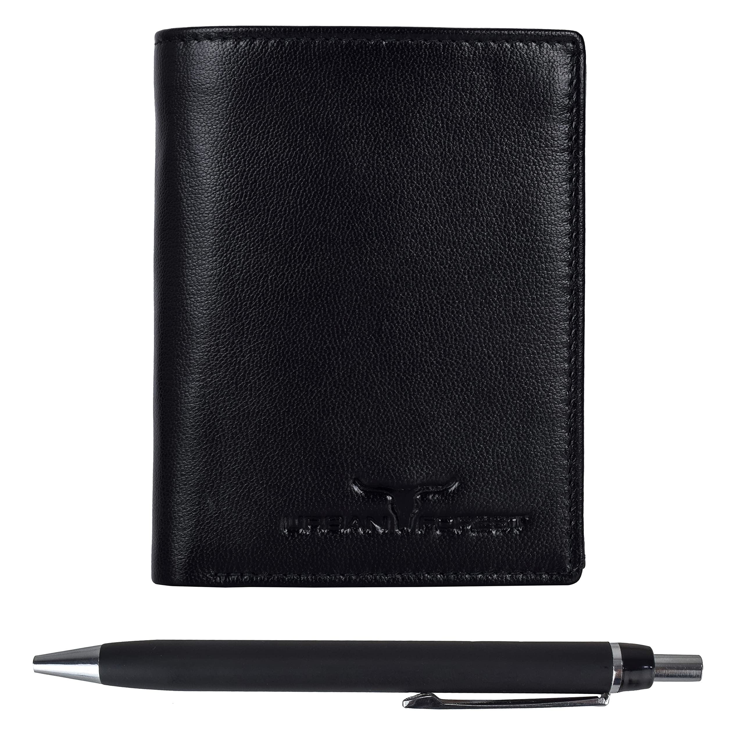URBAN FOREST Toronto Black Leather Wallet and Pen Combo for Men