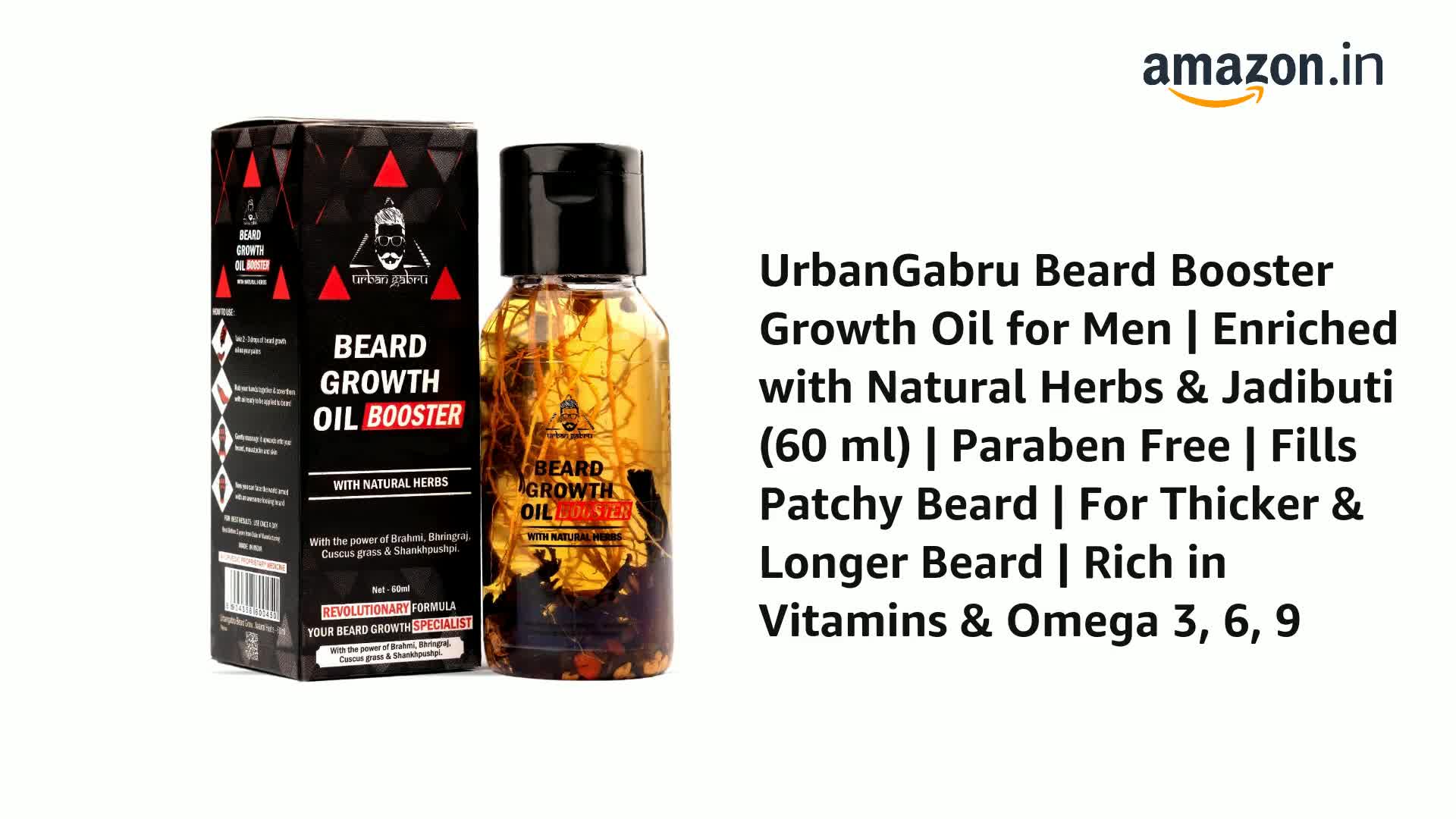 UrbanGabru Beard Booster Growth Oil for Men | Enriched with Natural Herbs & Jadibuti (60 ml) | Paraben Free | Fills Patchy Beard | For Thicker & Longer Beard | Rich in Vitamins & Omega 3, 6, 9