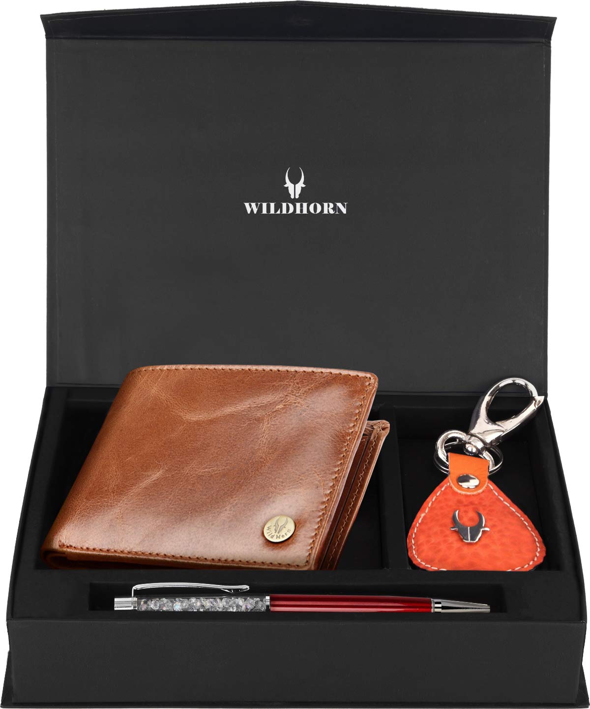 WildHorn Leather Wallet Keychain & Pen Combo for Men
