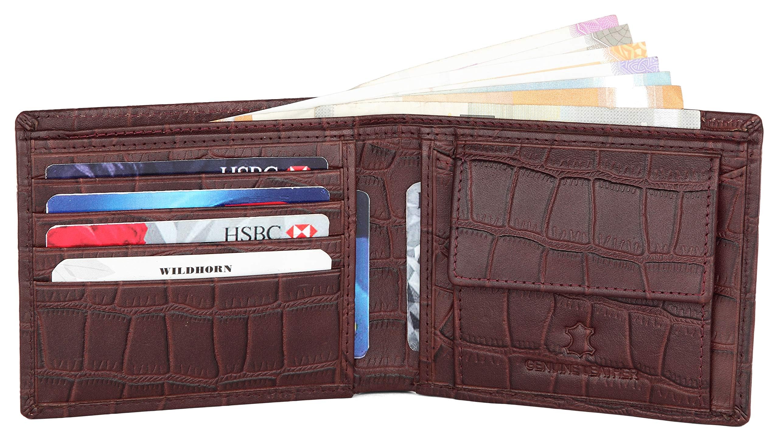 This is high-quality classic genuine leather wallet from WildHorn.The multiple compartments help keep everything you need organized and secure while looking chic and sophisticated. Hand stitched dyed and aged to last a lifetime this classic wallet will show your style every time you pull it out. Stay elegantly well-organized with all your smallest most valuable personal and financial items neatly stashed in thiswallet. This smooth rich supple and luxurious leather wallet contains a full-length cash compartment multiple credit card slot and slip pocket. It is perfect for holding receipts and its exclusive design ensures a comfortable fit in any pocket. This wallet has been made out of Top Grain Leather and it's a natural thing where colour variation is never under control. MATERIAL CARE:Dry clean only. If leather gets too wet dry it slowly. Speed drying leather changes its chemical structure and you end up with stiff crinkle cut chaos. So aim for room temperature drying with gentle air rather than direct heater time with a hair-dryer. And keep it in the shape you want it to end up as leather will remember the shape it was when wet.SLIM FEEL: Without bulky it slides into your pocket effortlessly and fits comfortably.GIFT BOXED: It will be presented in an appealing gift box making it as an ideal gift.Dimensions: LxHxB_12x10x2 cm. 100% customer satisfaction.Fast and secure way of delivery.