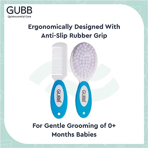 GUBB Baby Grooming Kit for New Born Baby | Smartly Designed, Soft Teeth, BPA Free Non-Toxic, Baby Comb & Brush Set with Soft Nylon Bristles - Blue
