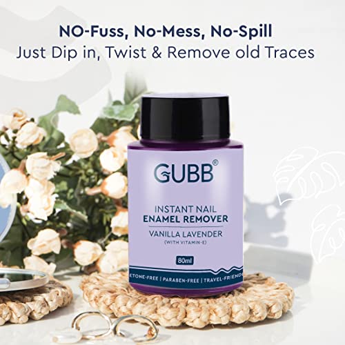 GUBB Nail Paint Remover Dip & Twist | Acetone Free & contain vitamin E| Best For Natural Fingernail | Lavender - 80ml