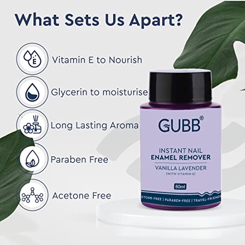 • VANILLA LAVENDER FRAGRANCE- The Vanilla Lavender fragrance is long lasting and pleasant to your senses. TRAVEL FRIENDLY- This nail paint remover comes in an 80 ml airtight packaging making it ideal for travelling.