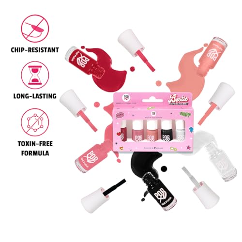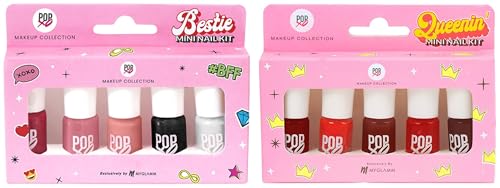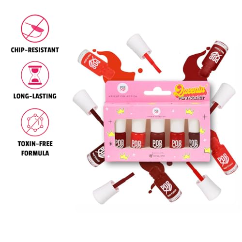 MyGlamm POPxo Makeup Collection -Mini Nail Kit-Queenin' Glossy Finish-5X3ml"Confidence level: queenin' 24x7! Queenin' is a stunning set of 5 chip-resistant red nail polishes that are the perfect match for all your red hot and #spicy manicure moods. Let your sassy self run wild! Always having a set of freshly painted nails is every girl's ideal state of living. While frequent salon visits can be heavy on the pocket there is one fun trick that won't break the bank. Bring the priceless feeling of new nails home with popxo makeup collection's queenin' mini nail kit. This mini nail polish kit includes 5 nail paints in bold shades of red that are sure to make a statement wherever you go. These mini nail polishes have a chip resistant formula and offer a long-lasting wear. They have a high gloss finish and make your digits look oh-so-fab. So are you ready to be your own nail technician? "MyGlamm POPxo Makeup - Mini Nail Kit - Bestie - 15ml (Set of 5) | Glossy Nail Polish Set | Long Lasting & High Gloss Effect | Chip Resistant Nail Paints | Cruelty-free & VeganVacay Mood: 24*7 This stunning kit of 5 chip-resistant nail polishes comes in bright poppin' colours to give you major beachy vibes. Escape the ordinary and let your mani dish out #VacayGoals! A set of freshly painted nails is every girl's happy place. While frequent salon visits can be heavy on the pocket there is one fun trick that won't break the bank. Bring the priceless feeling of new nails home with POPxo Makeup Collection's Vacay Mini Nail Polish Set. It includes 5 nail paints in bright shades of pink peach blue red & turquoise perfect for that vacay mood. All nail colours in this mini nail polish kit are made with a chip-resistant formula and offer long-lasting wear. Its high gloss effect gives your at-home manicure a salon-like shine. Are you ready to flaunt those gorgeous nails?