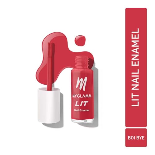 MyGlamm LIT Nail Enamel - Daily Glamm - Boi Bye (Classic Red Shade) | Chip Resistant, Long Lasting, High Shine Glossy Nail Polish (7ml)