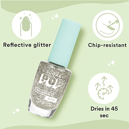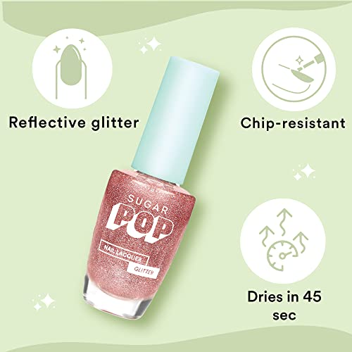 Make your nails look extra fancy with SUGAR POP Glitter Nail Lacquers! These gleaming chip-resistant nail lacquers with a mix of fine and chunky shimmer give your nails a multi-dimensional sparkle. What's more? These long-lasting quick-drying nail paints dry to a high-shine gel-like finish that remains fresh for days!