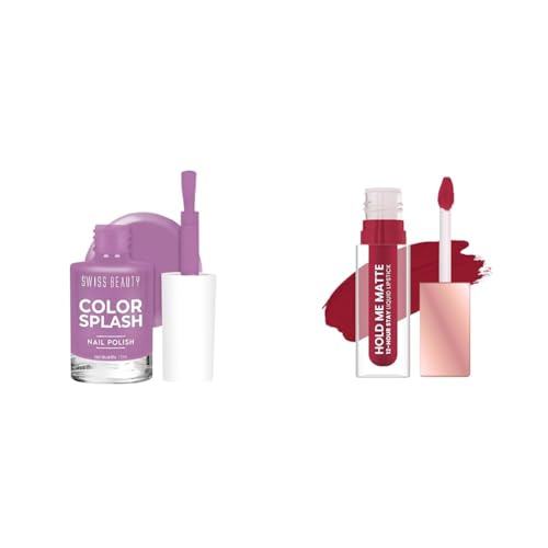 Swiss Beauty Color Splash Nail Polish with Glossy Gel Finish | Non-Chipping Quick drying Long-Lasting Nail paint | Shade- 29 15mlSwiss Beauty Nail Polish are mini colour bombs that provides an outstanding colour payoff with a flawless finish. A high-quality chip-resistant formula that glides gently giving you a smooth finish in one stroke. A specially designed round-cut fan-shaped brush provides a seamless end-to-end coverage to your nails.Swiss Beauty Hold Me Matte Liquid Lipstick | 12 Hours Stay | Non-Transfer Lipstick | Waterproof Lipstick with Intense Hydration| Shade - Red Chilly 4.5ml"Introducing ""Hold Me Matte Liquid Lipstick"" by Swiss Beauty the ultimate matte lipstick that's here to hold your lips in a matte-tastic embrace! Get ready to enter a world of lip enchantment where non-transferable magic meets non-drying long-lasting colour payoff. Hold the world in awe with the stay-put power of Hold Me Matte Liquid Lipstick. Its non-transfer and non-drying formula ensures your lip colour stays loyal to you no matter what adventures you embark on. From sipping cocktails to indulging in scrumptious delights this lipstick won't budge giving you the freedom to slay all day! Its liquid texture glides on like a dream hugging your lips with intense pigmentation and the added Apricot Oil keeps your lips moisturised. Let your pout steal the spotlight as you rock a lip look that's both daring and delightful. Say goodbye to touch-up troubles as this long-lasting lip BFF stays put for up to 12 hours keeping you selfie-ready at all times. From dawn till dusk your lip colour remains vibrant and vivacious. So pucker up Hold Me Matte Liquid Lipstick is here to hold you close giving you 30 shade options to express your every mood. Step into the limelight and celebrate your beauty with a lip look that's fierce fabulous and flawlessly matte. It's time to turn heads make memories and rock the world with your irresistibly stunning lips!