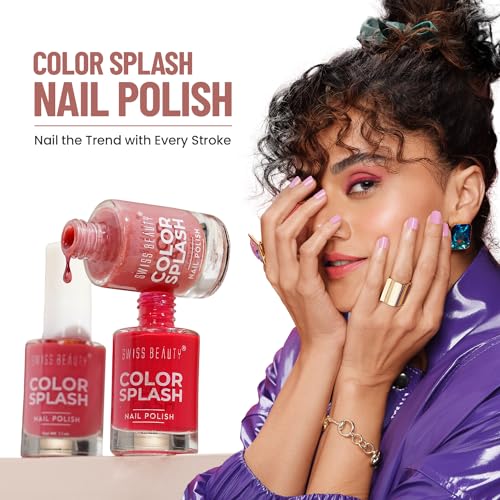 Swiss Beauty Color Splash Nail Polish with Glossy Gel Finish | Non-Chipping Quick drying Long-Lasting Nail paint | Shade- 03 15mlSwiss Beauty Nail Polish are mini colour bombs that provides an outstanding colour payoff with a flawless finish. A high-quality chip-resistant formula that glides gently giving you a smooth finish in one stroke. A specially designed round-cut fan-shaped brush provides a seamless end-to-end coverage to your nails.Swiss Beauty Professional UV Gel Nail Polish Lasts Upto 21 Days Super Glossy Finish Non-Chipping Non-Smudging Quick Drying Nail Polish Shade -06 15 mlThis gorgeous glossy effect UV Gel Nail Polish promises you 21 days of high gloss wear without nicking chipping or smudging. Just apply a thin layer and dry under a UV or LED lamp. This long-lasting UV Gel Nail Polish is suitable for natural nails UV gel nails false nails acrylic nails and nail tips. This Gel Nail Polish is highly pigmented with good tenacity and easy to apply. It offers flawless finish with its built-in brush that fits every nail size for a streak-free application. PROS: Easy Application Long Lasting Quick Dry Non-Toxic ingredients.