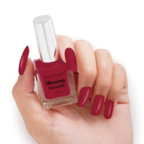 HomeBeautyNailsNail PolishSwiss Beauty Stunning Nail Lacquer | Chip Resistant, Quick drying nail paint | Highly Pigmented with high shine Nail polish | Shade - Hot Wine, 12gm