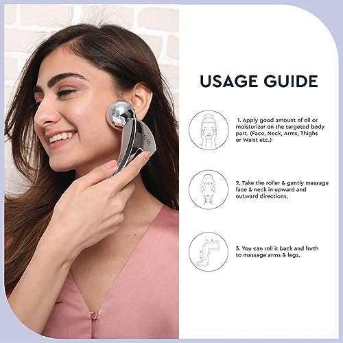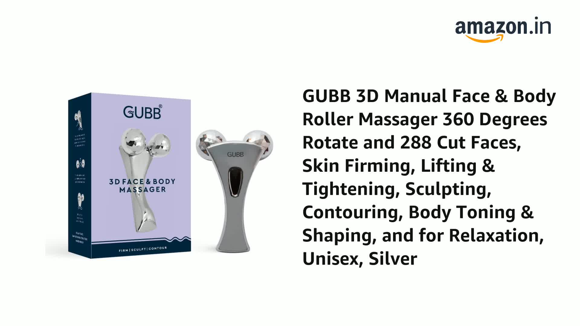 GUBB 3D Manual Face & Body Roller Massager 360 Degrees Rotate and 288 Cut Faces, Skin Firming, Lifting & Tightening, Sculpting, Contouring, Body Toning & Shaping, and for Relaxation, Unisex, Silver