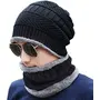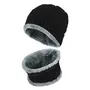 CREATURE Unisex Woolen Beanie Cap Plus Muffler Scarf Set (BLACK), BLACK, Free Size