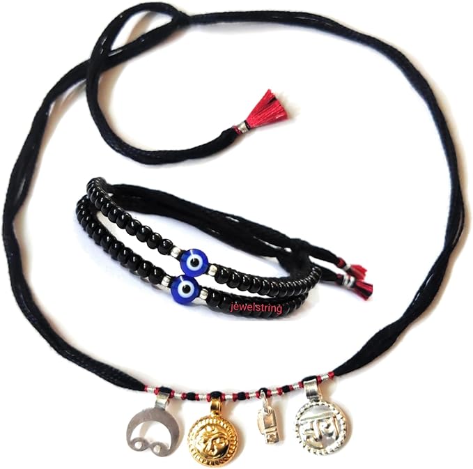 Jewel string by Bk arts Evil eye Nazaria with Chand Suraj Chaku Haay Kanthi adjustable Silver for newborn baby to 4-year child(unisex). Easy to wear for daily,comfort,fine finish for daily wear non itching led free new design with fine quality.peaople like to wear chand suraj chaku haar to avoid buri nazar for kids.