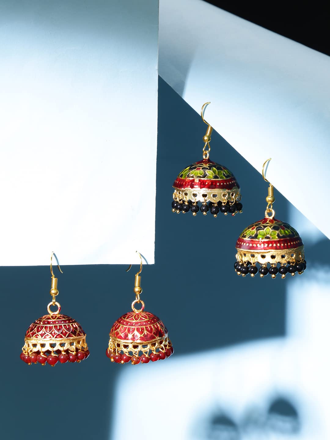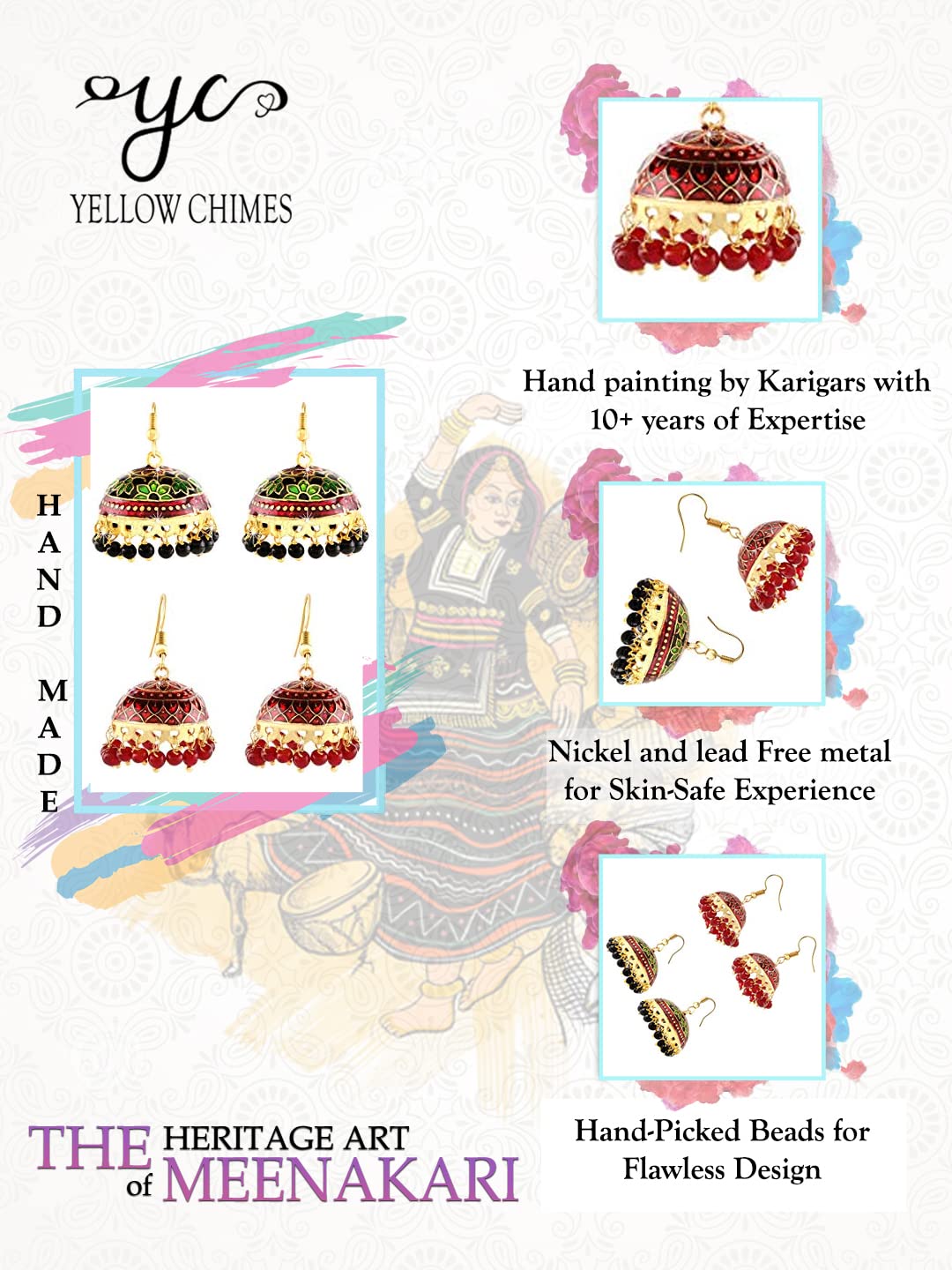Yellow Chimes Earrings for Women & Girls Traditional Multicolor Meenakari Jhumka | Gold Plated Set Earring | Dome Shaped Jhumka Earring Combo | Accessories Jewellery | Birthday & Anniversary Gift