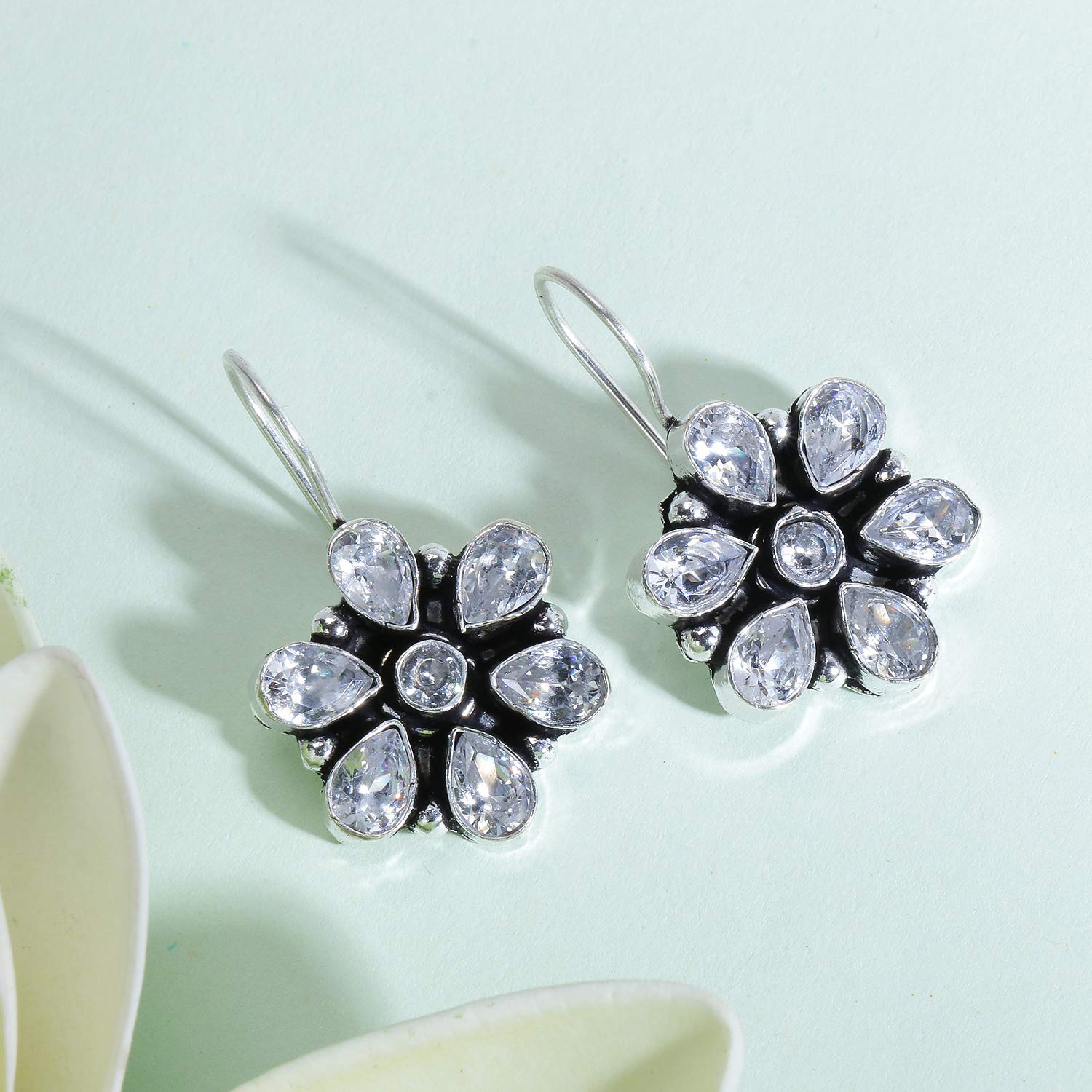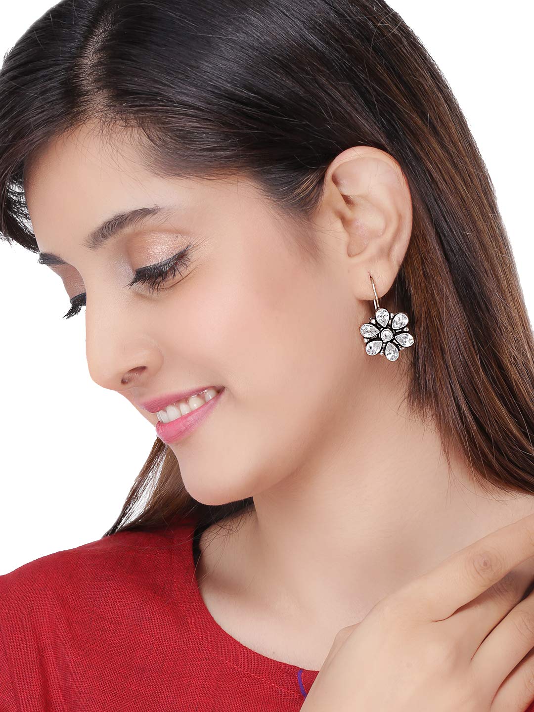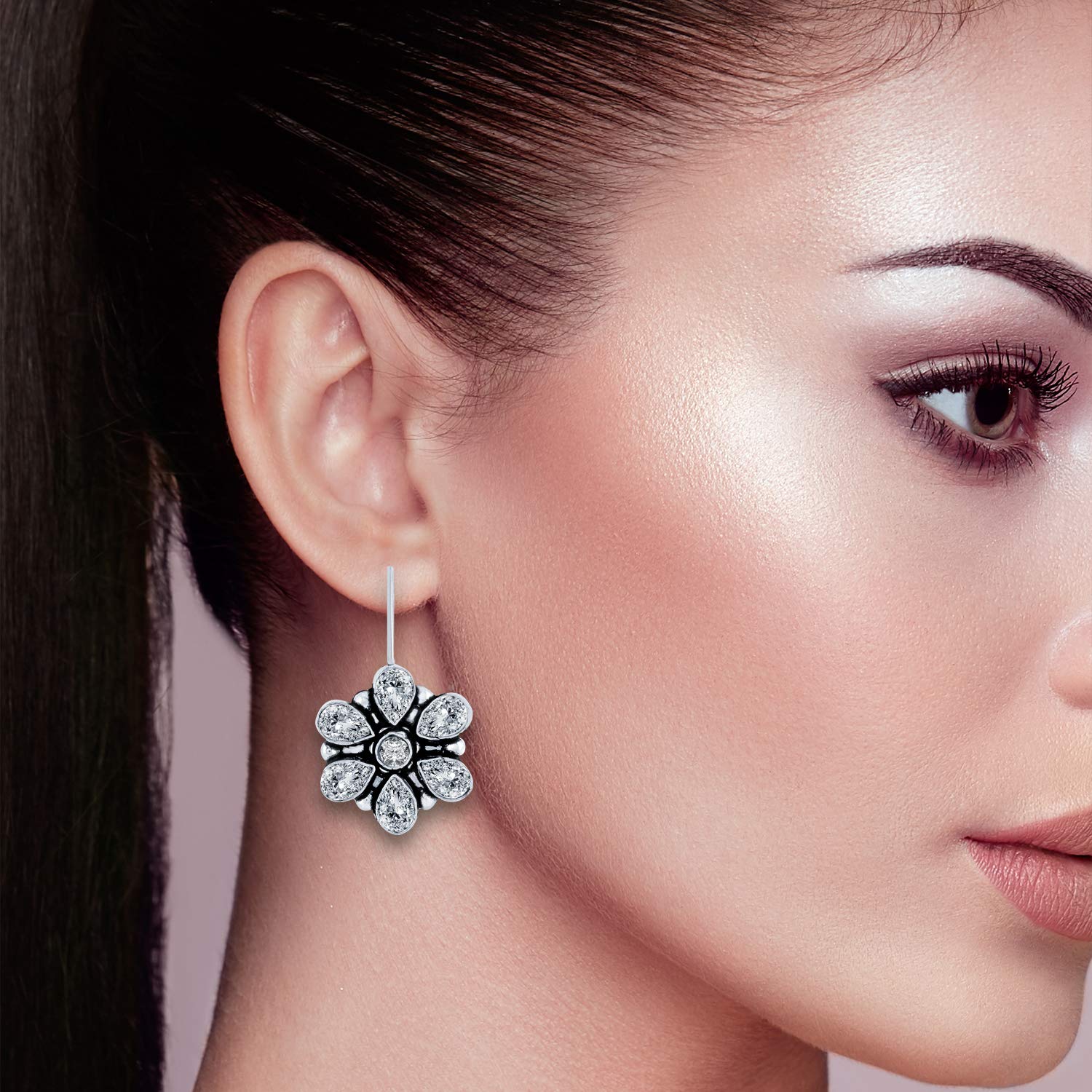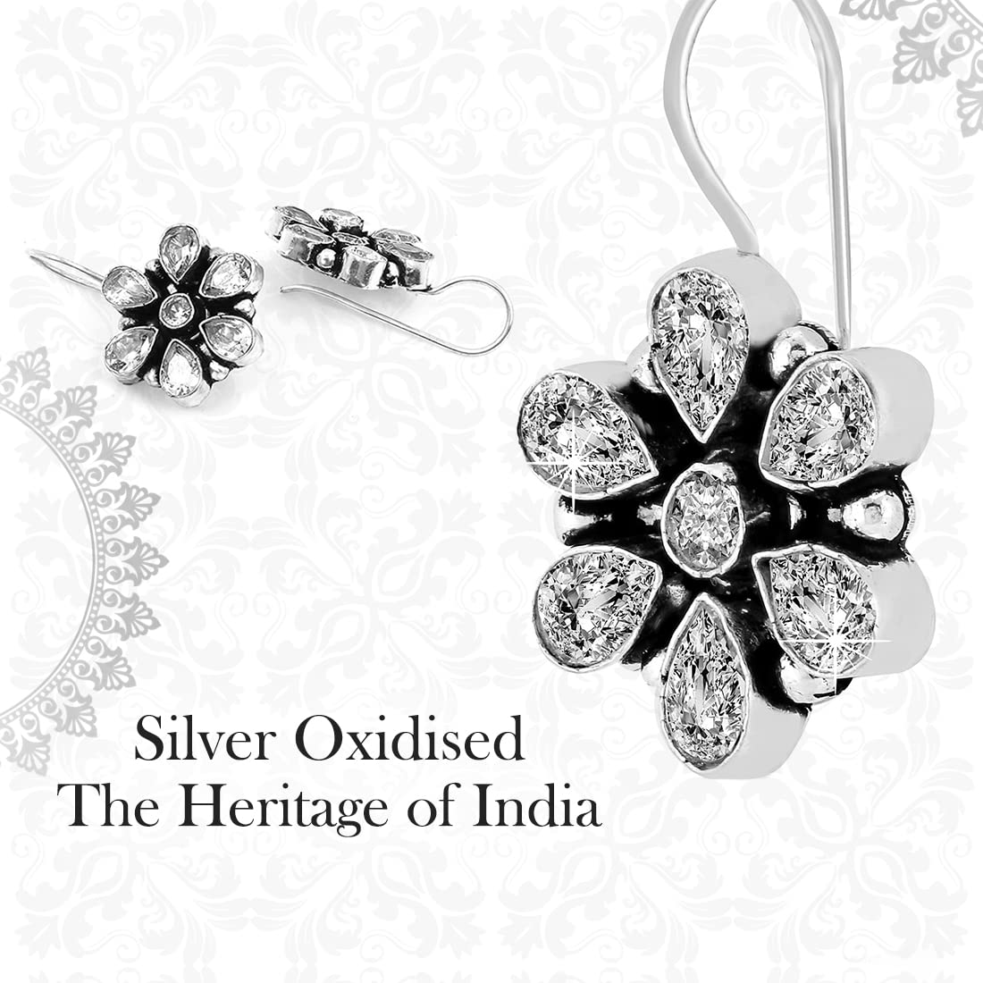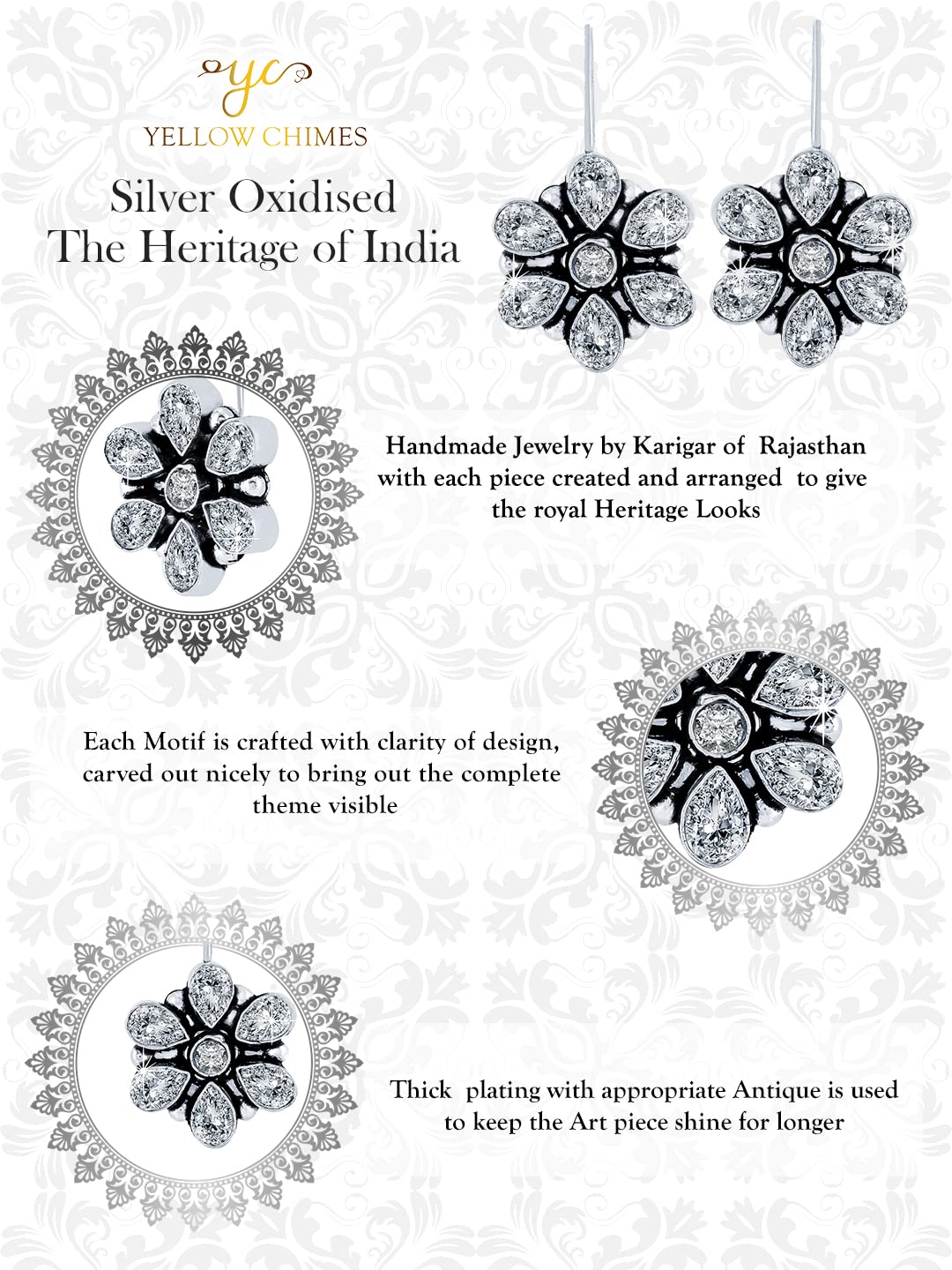 HomeFashionAccessoriesYellow Chimes Earrings for Women and Girls | Traditional Silver Oxidised Drop Earrings Studded White Stone | German Silver Earring | Floral Drop Earrings | Accessories Jewellery for Women | Birthday Gift For Girls and Women Anniversary Gift for Wife