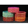 Glass with Zircon Gemstone and Printed Design Glossy Finished Multicolor Kada Set For Girls and Women Pack of 20 Kada