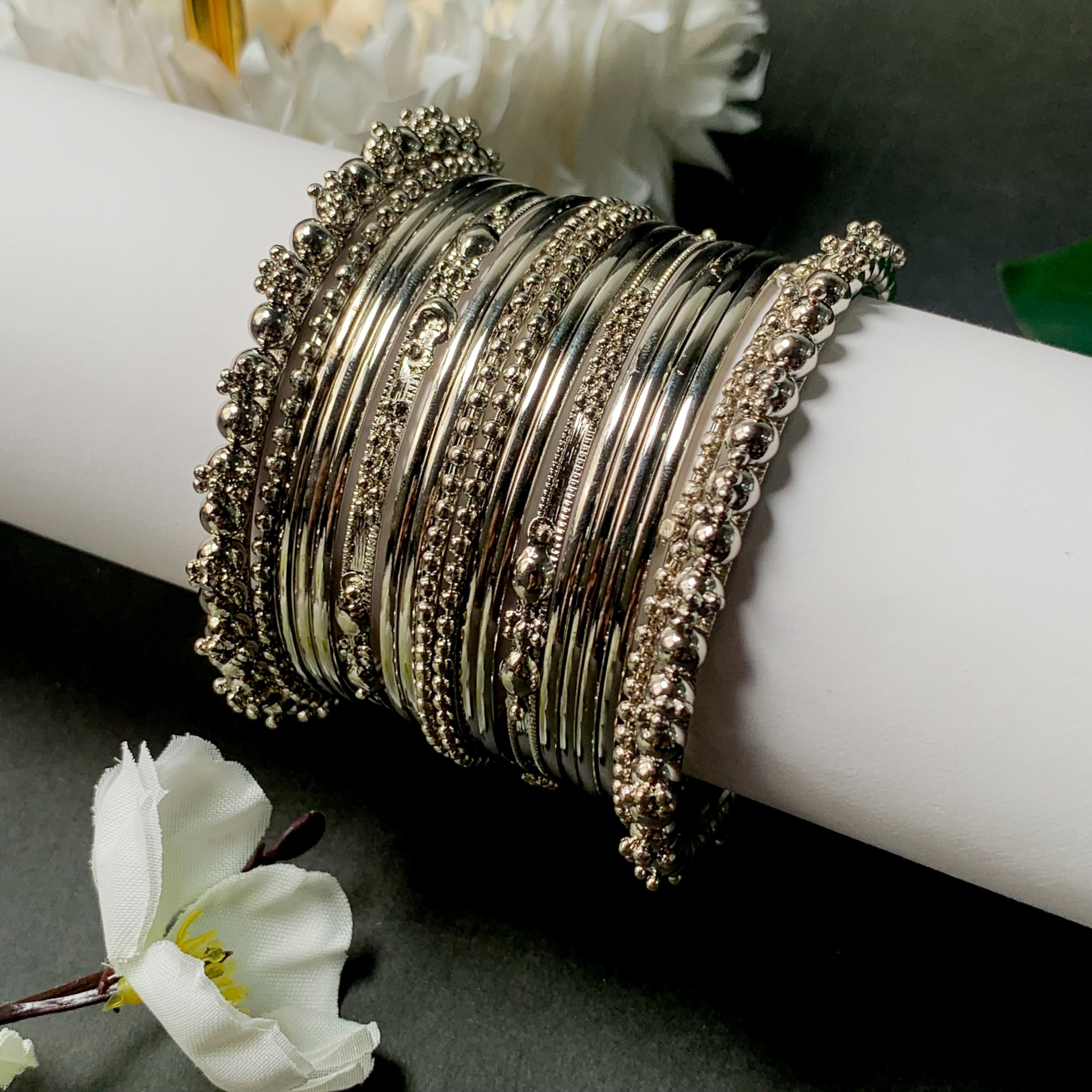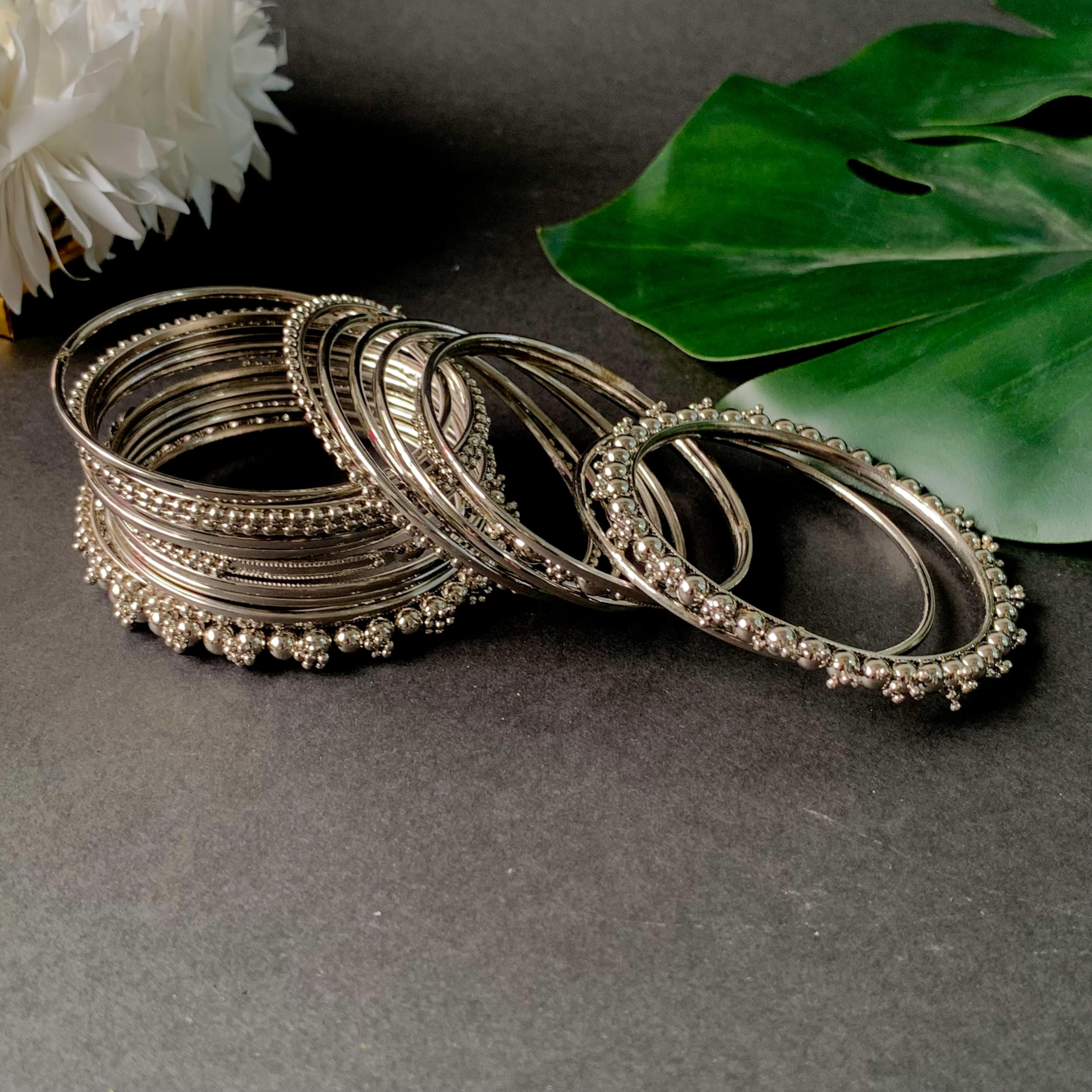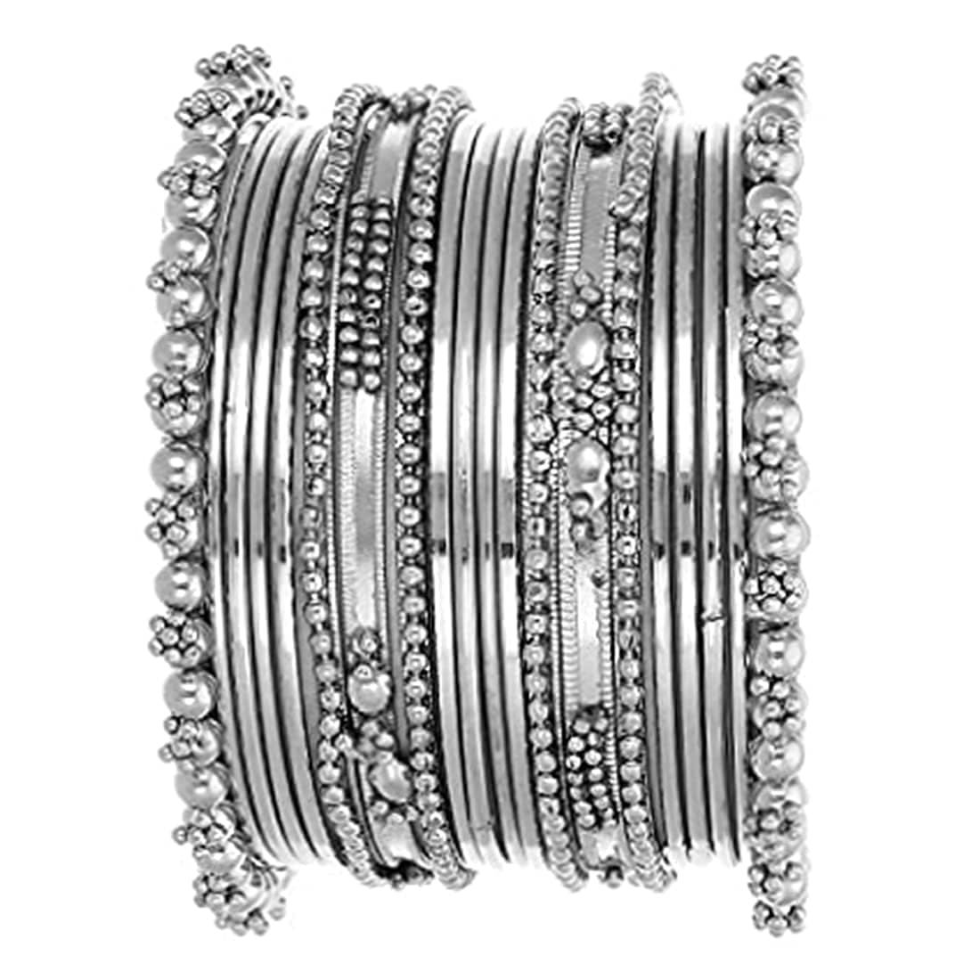 I Jewels Navratri Traditional Silver Oxidized Bangle Set For Women (ADB157S) (Pack of 1)