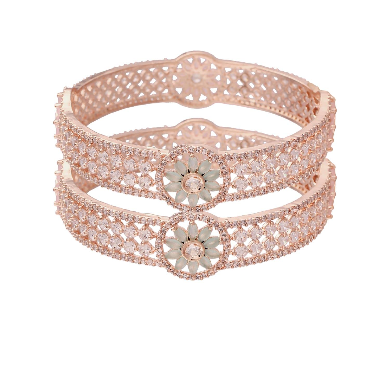 I Jewels Stylish Latest Fashion Thick Brass Kada Bangles Encased With CZ American Diamonds For Women/Girls