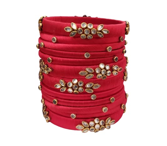 HomeFashionBanglesIJYA Sihan Handicrafts Kundan Work Silk Thread Bangle Kada For Women Girls 12 PC Set Wedding & Festive Occasion Handmade Multicolored Chura Chuda Stone Studded