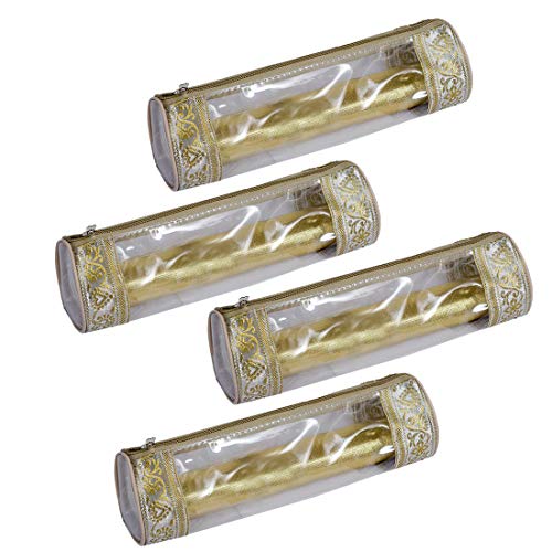 DESCRIPTION : Now organize your bangles systematically and protect them from breakage. The transparent pouch gives convenience of better visibility. You can use the vanity box in the drawer too and can use the pouch for storing your bangles and bracelets as well .The user can view the bangles from the transparent sheet above the bangle box without opening it. A supportive frame is installed on the boundaries of the transparent box which serves better safety of the bangles. FEATURES : Trendy look. Light weight. Fine finish. OTHER DETAILS : Tailored with transparent fabric. Standard quality with high finish stitches. Color- Golden. Zip closure. Can store enough bangle. Best as indoor organizer and travel friendly. A perfect gift .