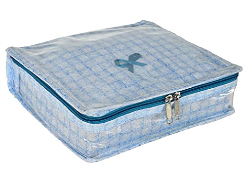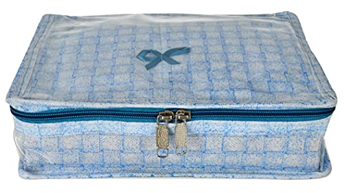 Kuber Industries Check Design Laminated PVC Jewellery Box/Organizer with 4 Transparent Pouch & 1 Bangle/Watch Rod (Blue)-HS_38_LUGGAGE21274