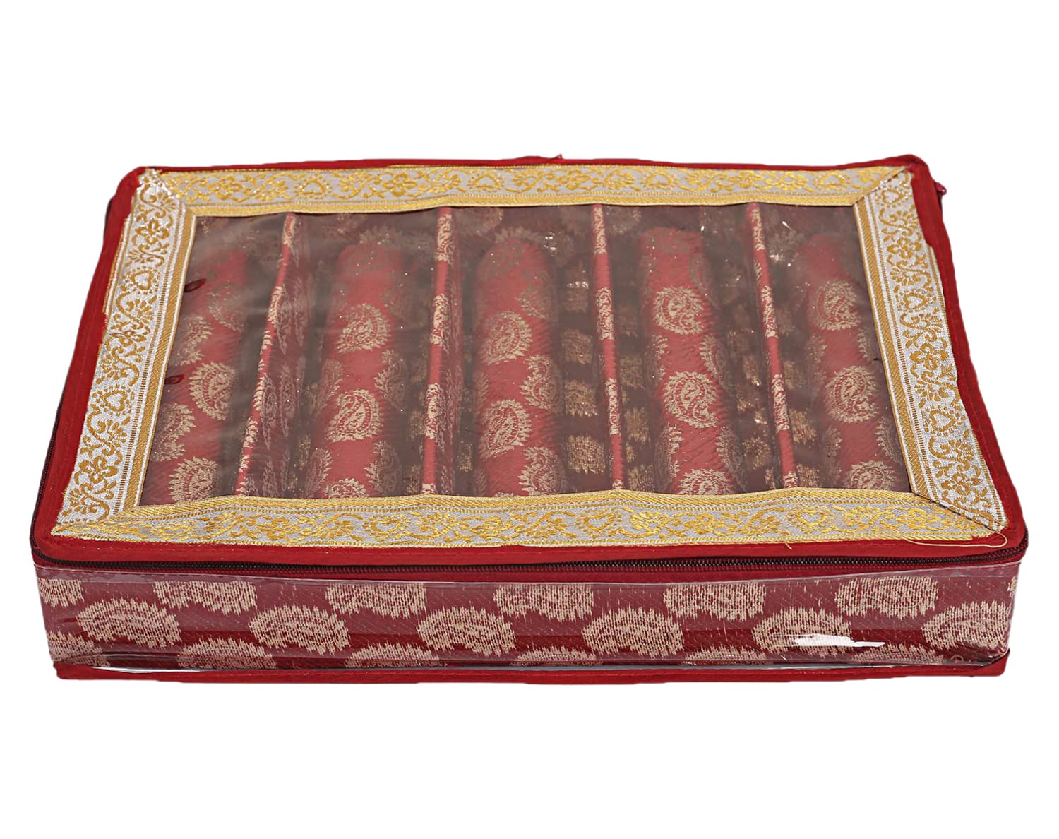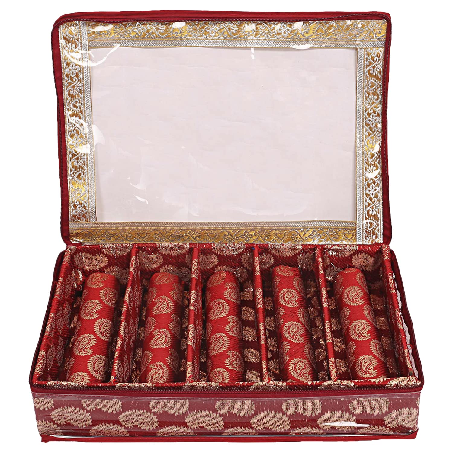Kuber Industries storage box organizer is ideal for storing bangles watches Bracelets jewellery small accessories etc. This is used to organize your bangles systematically and protect them from breakage so keep delicate your bangles safely this is enough to keep your bangles and all needs. This bangle box is made of good quality laminated wooden and paperboard material so this is very durable long-lasting and very useful. There are 1 rods inside to hold bangles stiffly at a place and avoid unnecessary tangling and breaking. It gives them a strong and stable hold to keep the brittle and beautiful bangles safe. It can accommodate many bangles and helps you in organizing them safely. The box is strong and thus helps in holding the bangles to avoid any breaking and damage. The strong frame fits at any comfortable place and looks indeed beautiful due to its decoration on a strong frame. The three rods fitted into the box completely hold the bangles firmly and strongly. The transparency of the pouch makes it even more revealing and attractive. The see-through pouch helps you see and know what is there inside and what is missing. If anything goes missing or bangles are broken we can immediately take the requiRed steps of either replacing or getting new ones. It always reminds us of the availability and unavailability. With elegant appearance and considerate design this watch case is great for personal use shop display and home decoration. Will be an ideal gift for birthday valentine's day wedding Christmas and new year