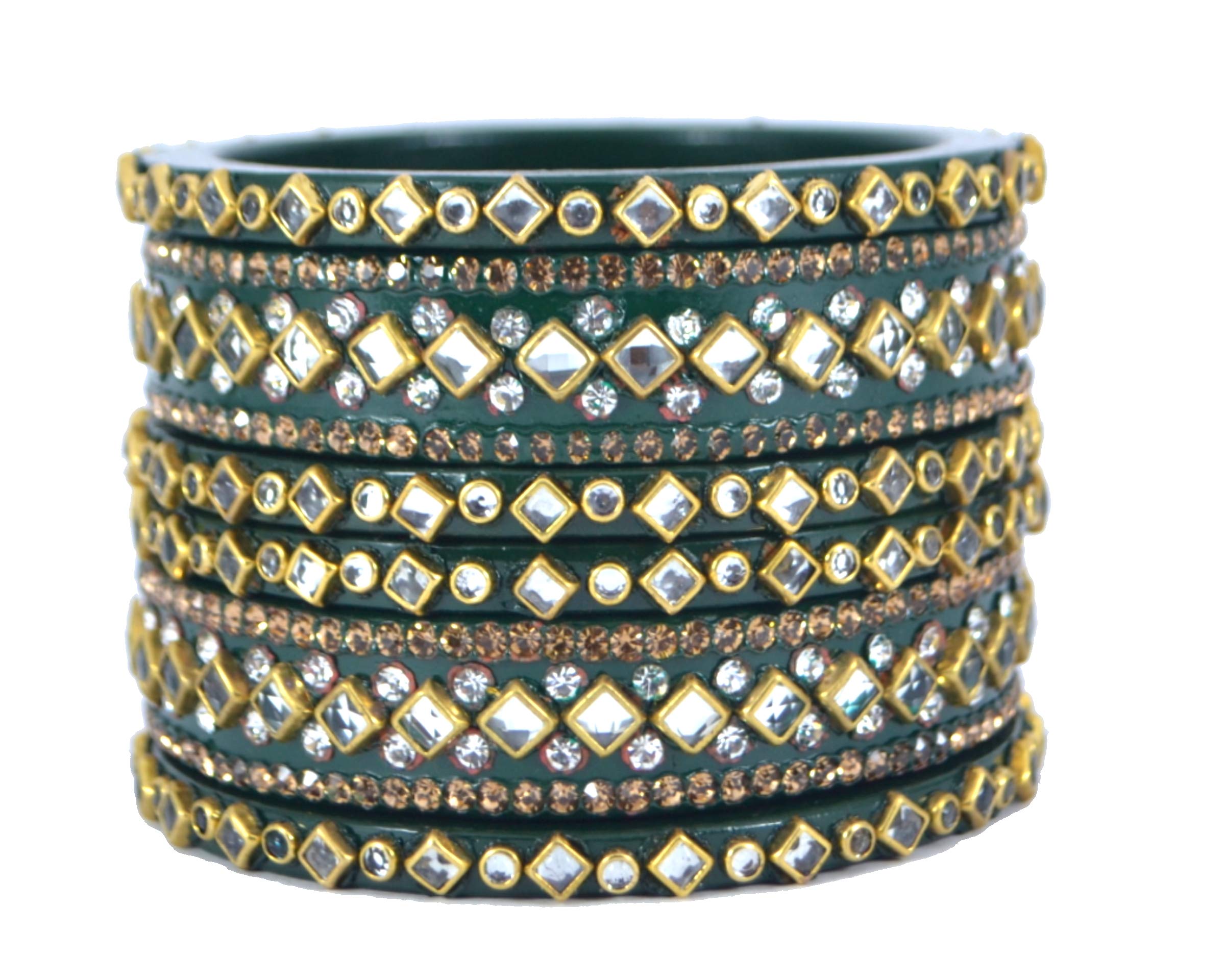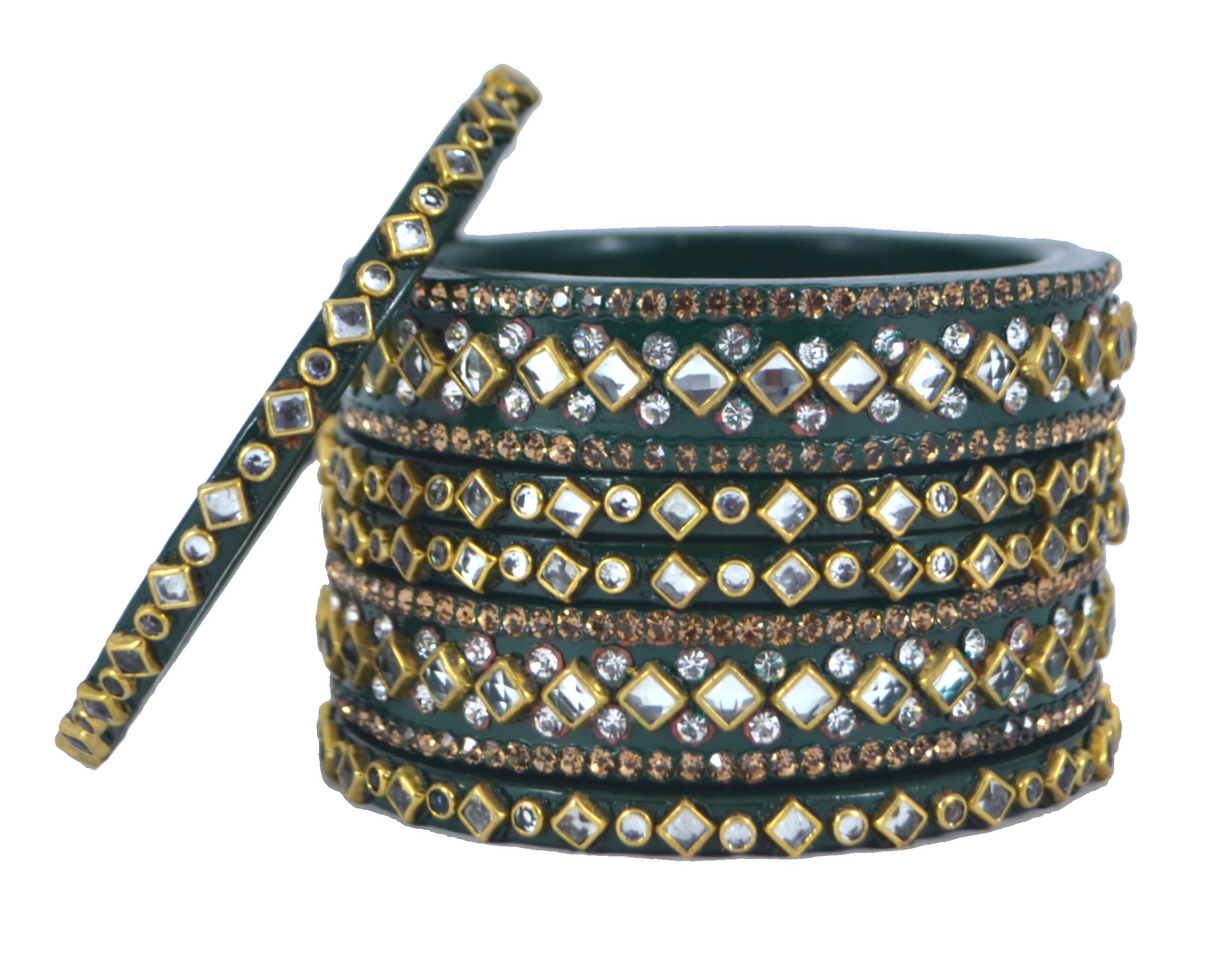 LAC BANGLES Lac Bangles Rajasthani Kundan Green Set