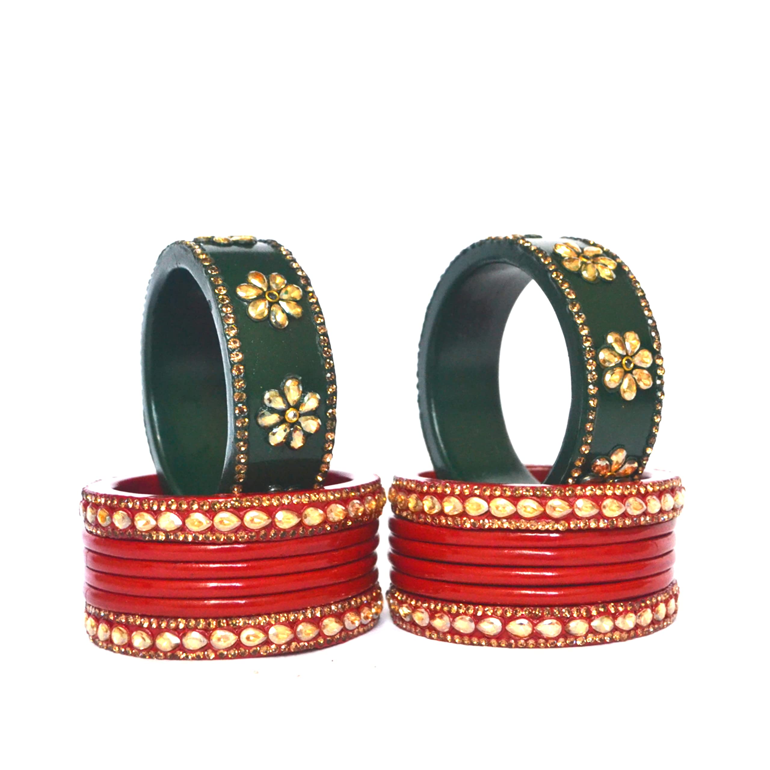 LAC BANGLES Lac Lakh Lahethi Bangles Set for women with machine cut Traditional Green patti Chuda set