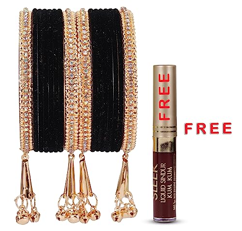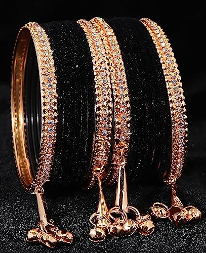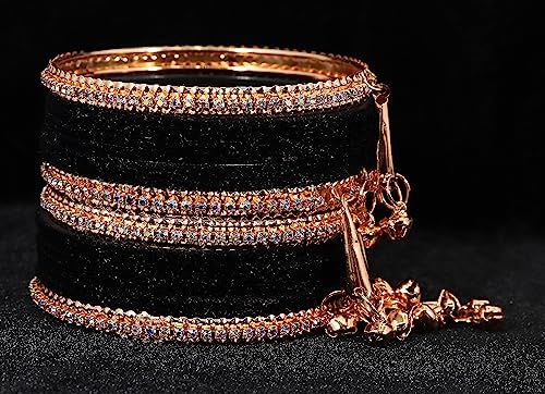NMII (New Make In India) Introduces Alloy Metal with Zircon Gemstone Studded Rose Gold Plated Velvet Latkan Bangle Set For Women and Girls. This NMII Bangle Set will Enhance The Beauty of your hands. These bangles are part of NMII's latest collection and made of Alloy Metal Premium Quality Zircon Gemstone Velvet and Rose Golden Plating Latkan Bangles Set. These NMII's Designer Bangles Have a Premium Finish and are Perfect for Festivals Parties Weddings Engagements and For Daily wear. Welcome to NMII a world of Glass bangles Metal bangles Acrylic Bangles Chuda Sets Bridal Chuda sets Kaleere sets Kadaa sets and other Women's Jewelry Accessories. Choose from us variety of bangles such as Glass Metal Silk thread Acrylic (plastic) Zircon Bead-worked Kundan-worked Lac material Electric Light Chudaa and more Available on . Please refer to NMII (New Make In India) Size Chart to determine your Wrist size Accurately. CLEANING INSTRUCTIONS: To clean the bangles use a smooth cotton cloth. To ensure their longevity. And Keep the bangles/kadaa away from Direct water Perfume Deodorant Sunlight and other Chemicals and store them in an Airtight zip-lock pouch. Thank you for choosing NMII (New Make In India) Products. If you like our products Please leave a review and share the product link with your friends and family. If you Find any Problems Please consult our product description For Sizes and Care Instructions and if the problem persists Contact us using the details provided in the product details section. NMII has been selling products on since 2016.