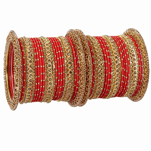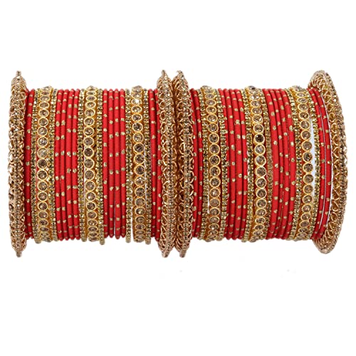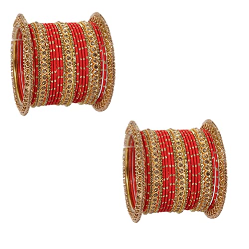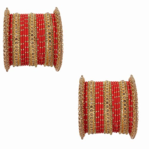 NMII Non-Precious Metal with Base Metal and studded with Zircon Gemstone or Zari Dotted Glossy Finished Traditional Chuda Bangle set for Women and Girls 2.4 Metal Zircon Gemstone