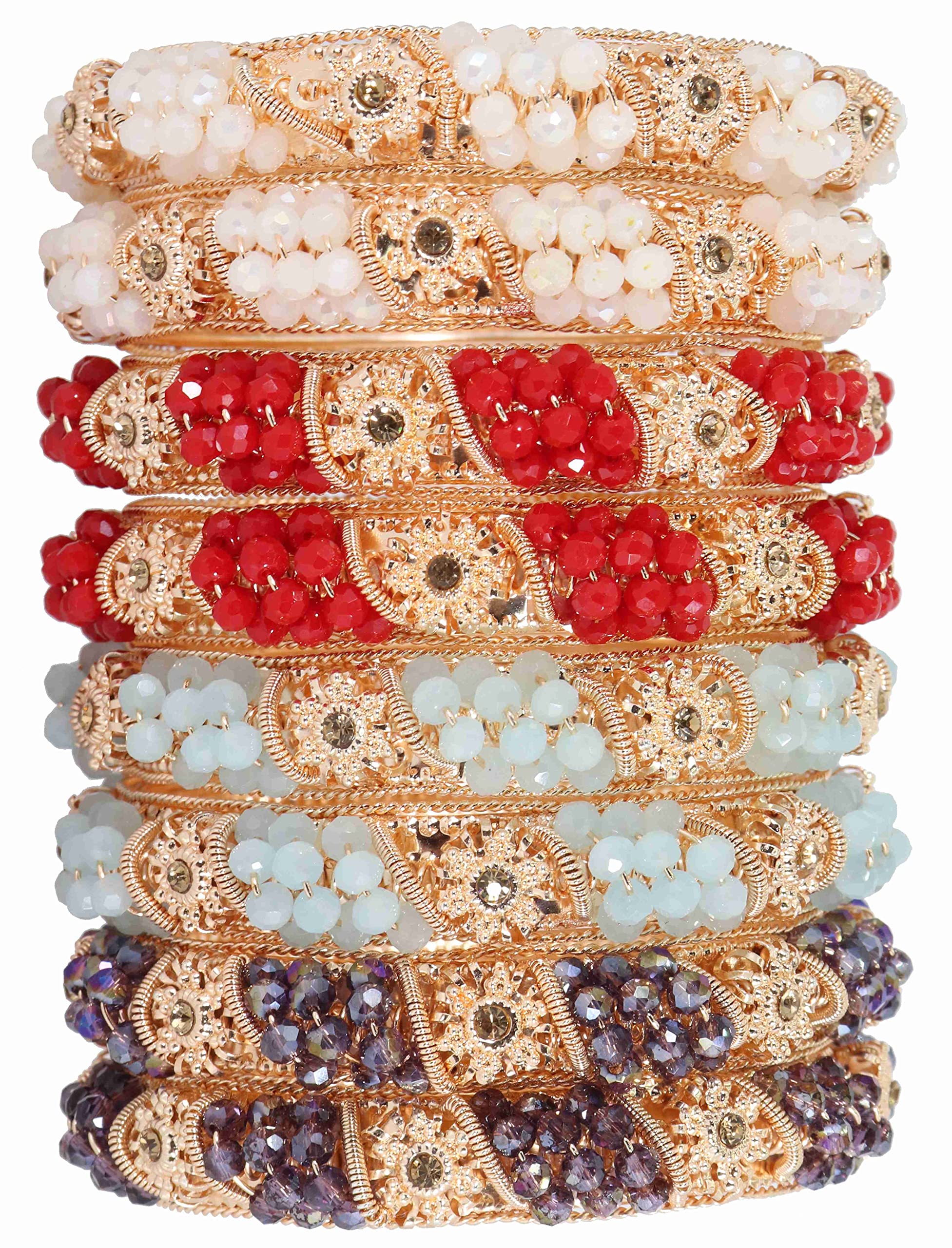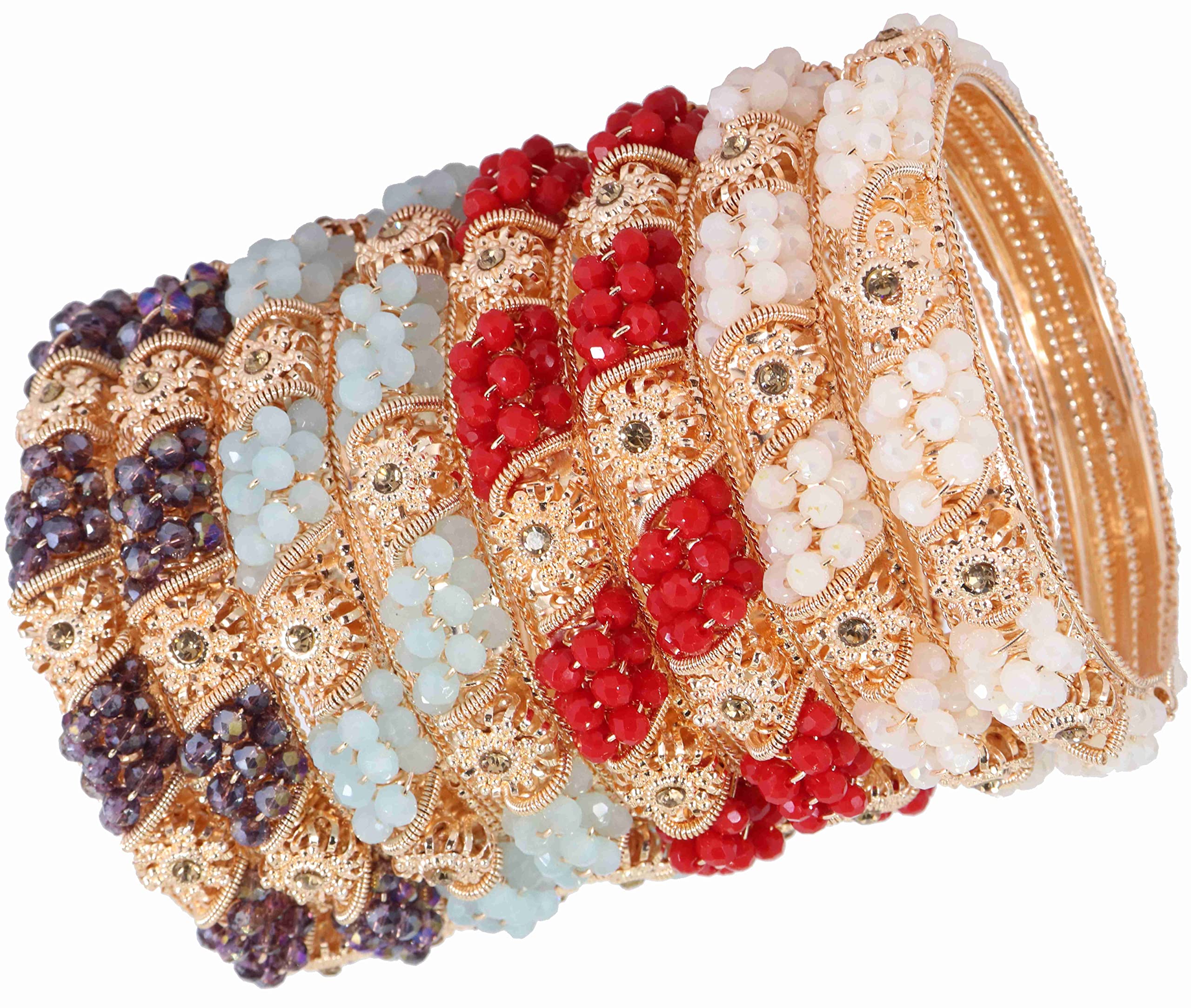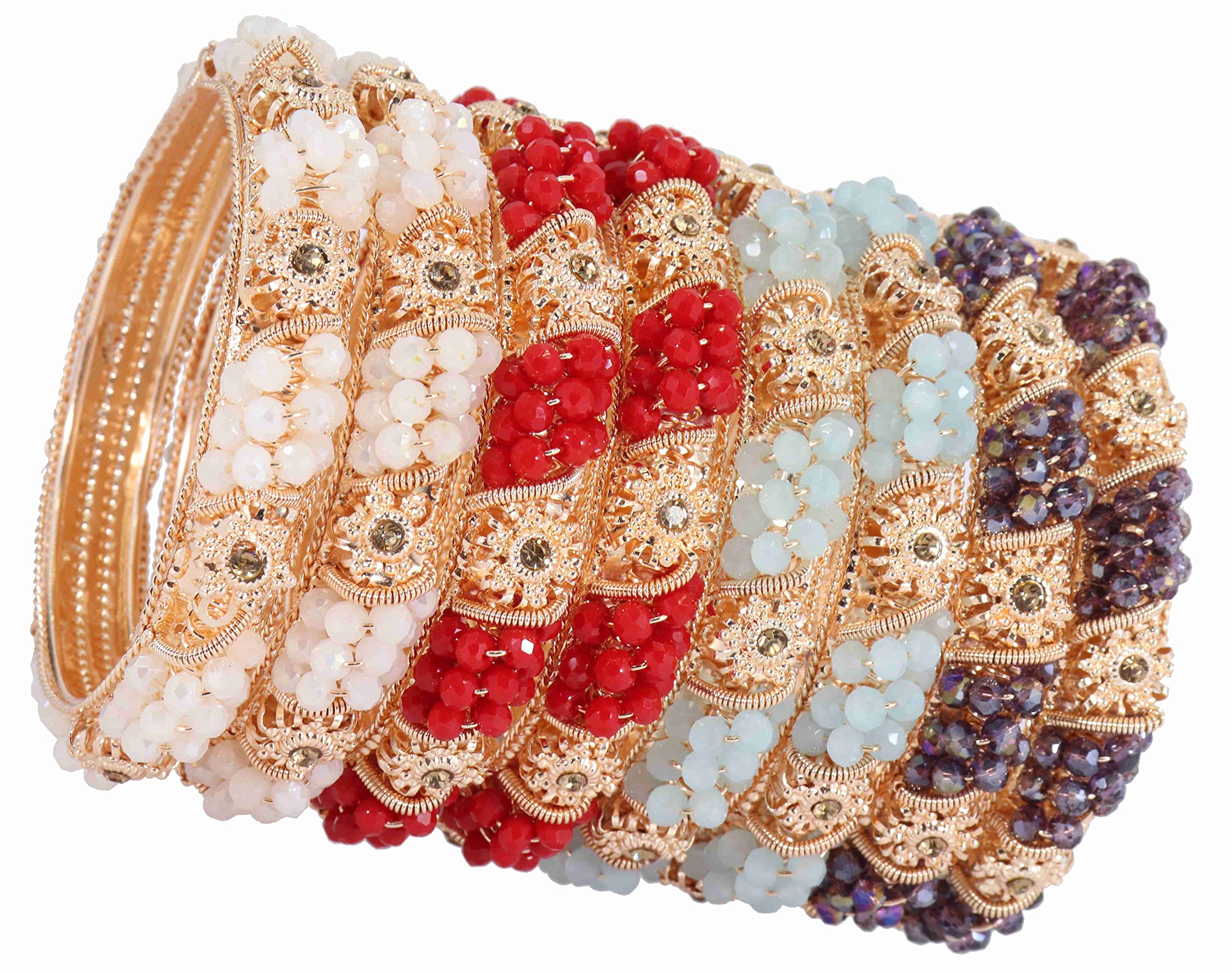 NMII Non-Precious Metal With Base Metal And Zircon Gemstone Or Colourful Beads Studded On Flower Glossy Finished Kada Set For women and Girls