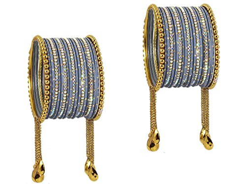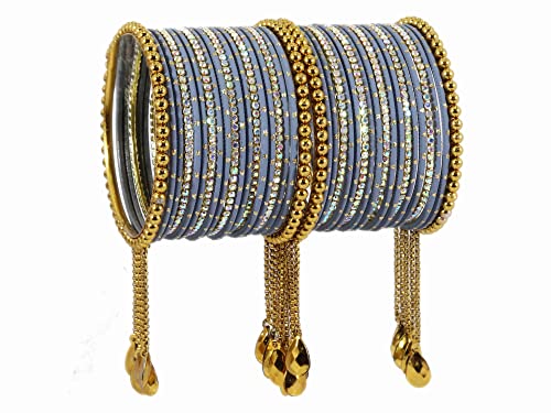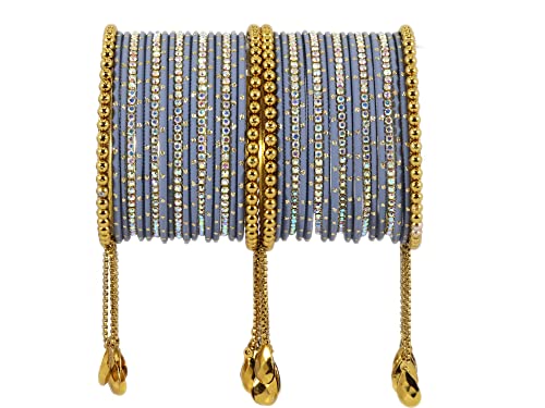 NMII Non-Precious Metal with Base Metal Zari Dotted and Rainbow Zircon Gemstone Studded Glossy Finished Kaleere Type Latkan Bangle set for Women and Girls 2.2 Metal Zircon Gemstone