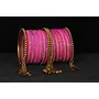 NMII Non-Precious Metal with Base Metal Zari Dotted and Rainbow Zircon Gemstone Studded Glossy Finished Kaleere Type Latkan Bangle set for Women and Girls 2.6 Metal Zircon Gemstone