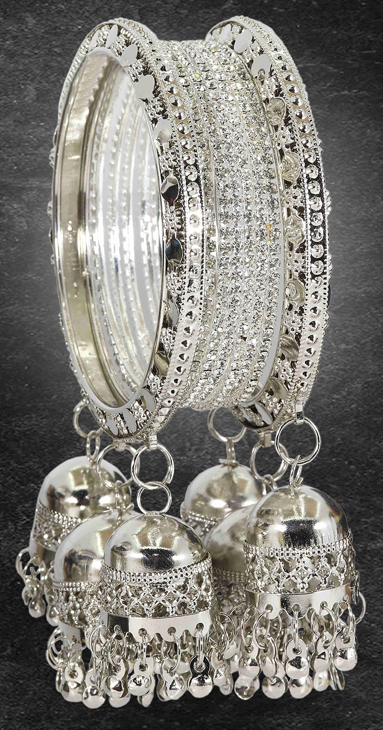 NMII Oxidized Base Metal With Zircon Gemstone Studded Glossy Finished Latkan Linked Kaleere Bangle set for and Girls