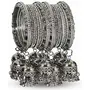 NMII Oxidized Base Metal With Zircon Gemstone Studded Glossy Finished Latkan Linked Kaleere Bangle set for and Girls 2.4 Metal Zircon Gemstone