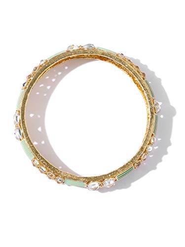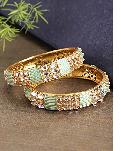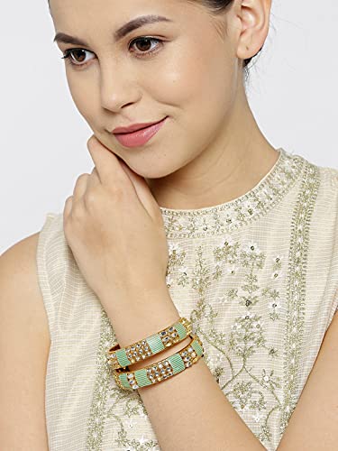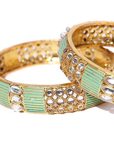 Priyaasi Set of 2 Gold-ColorKundan Studded Meenakari Bangles in Mint Green Color
