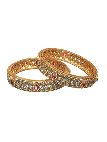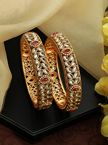 Priyaasi Traditional Golden ColorKundan Studded Leaf Bangles Set of 2