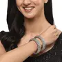 The bangles look very pretty and is exactly as shown in the picture. The material is not cheap and the colour doesn't come off with use. It's the perfect addition to complete your look.