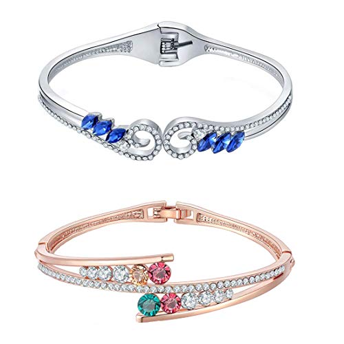 2 Pcs of Combo Exclusive Designer Copper and Rose Gold Plated Cubic Zircon Crystal Party Wear Charm Bracelets for Women