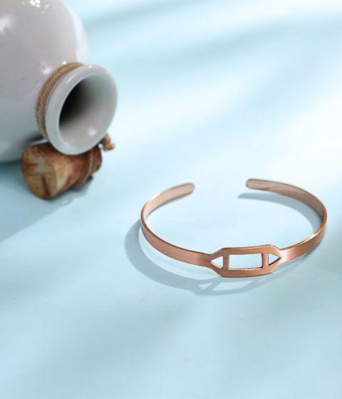 Add a graceful touch to your wrist by this copper cuff. It experiments with an abstract cut-out design and delicate silhouette. It will have a perfect fit around wrist, as both ends are open. It is skin friendly and light weight.With a glamorous and stunning ethnic look, this copper cuff is the perfect guise for your outfit. This will add an Indian traditional charm to your style though it goes well with western attire also.
