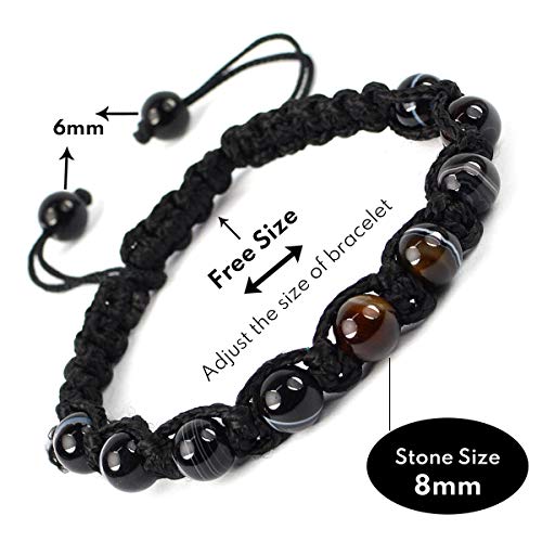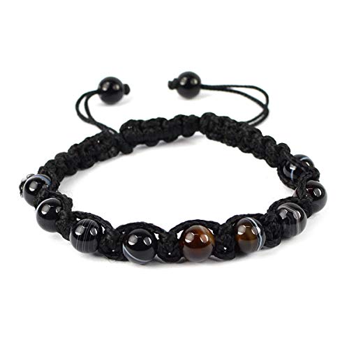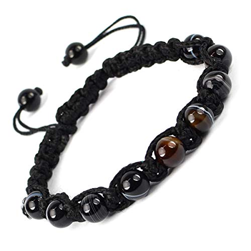 Natural Black Botswana Agate Bracelet Crystal Stone 8 mm Round Bead Thread Bracelet for Unisex (Color : Multi)