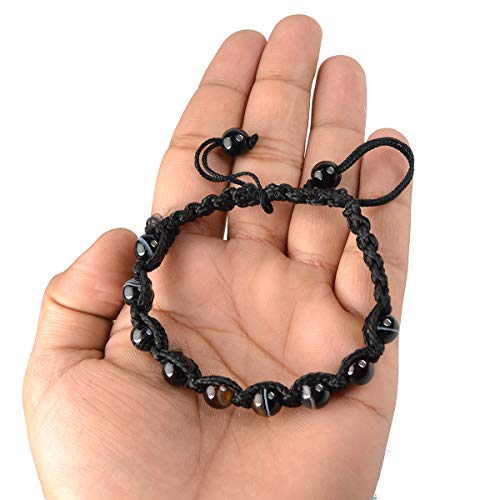 Natural Black Botswana Agate Bracelet Crystal Stone 8 mm Round Bead Thread Bracelet for Unisex (Colo