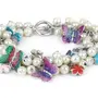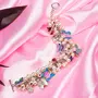 Estele Rhodium Plated Gardenia Enamel Flower Butterfly Pearl Charm Bracelet For Women