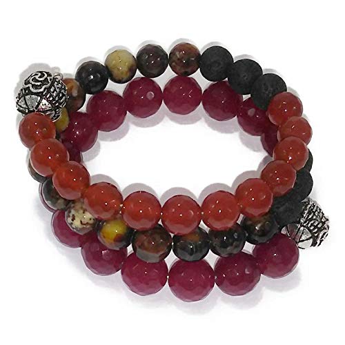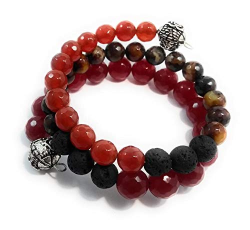 G&F by Gifts and Fashion brings you fashion and handmade jewellery for all seasons. Semi precious aromatherapy bracelet suitable for both men and women. It is free size and expandable as its memory wire core adjusts and stretces to your wrist size.Perfect for self wear and for gifting.Stone Colour: Red brown and blackStone: Onyx and Lava stonyx is strength-giving providing support in difficult or confusing times as well as during times of enormous mental or physical .Lava Stone is a grounding stone that strengthens one's connection to Mother Earth.It gives us strength and courage allowing us stability through times of change. It provides guidance and understanding in situations where we may need to "bounce back".A calming stone it is very useful in dissipating anger. It promotes positive changes where needed in behavioural issues.In ition Lava Stone is a wonderful aromatherapy essential oil diffuser. Simply a few drops of your favourite essential oil and enjoy the ed therapeutic benefits it brings.