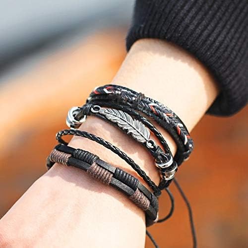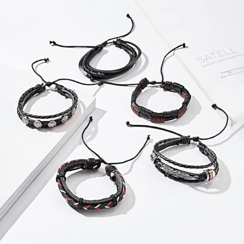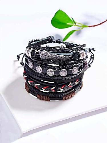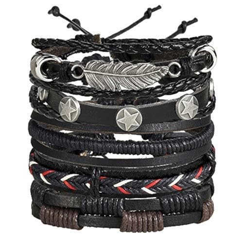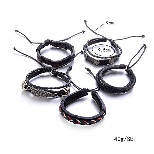 Multi PCS Combo Leather Wraps Casual Latest Trend Bracelets for Men and Boys (5pcs Leather Wraps Cuff)