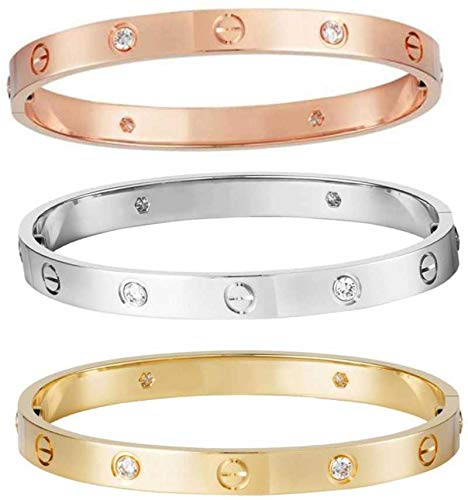 MYKI Stainless Steel Tri-Color Bracelet Set For Women & Girls (Diameter 2.4inch Width 6mm)